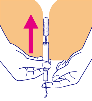 Nhẹ nhàng đưa ống đẩy vào trong cho đến khi ngón cái và ngón trỏ giữ phần đuôi của ống đẩy chạm vào cửa âm đạo