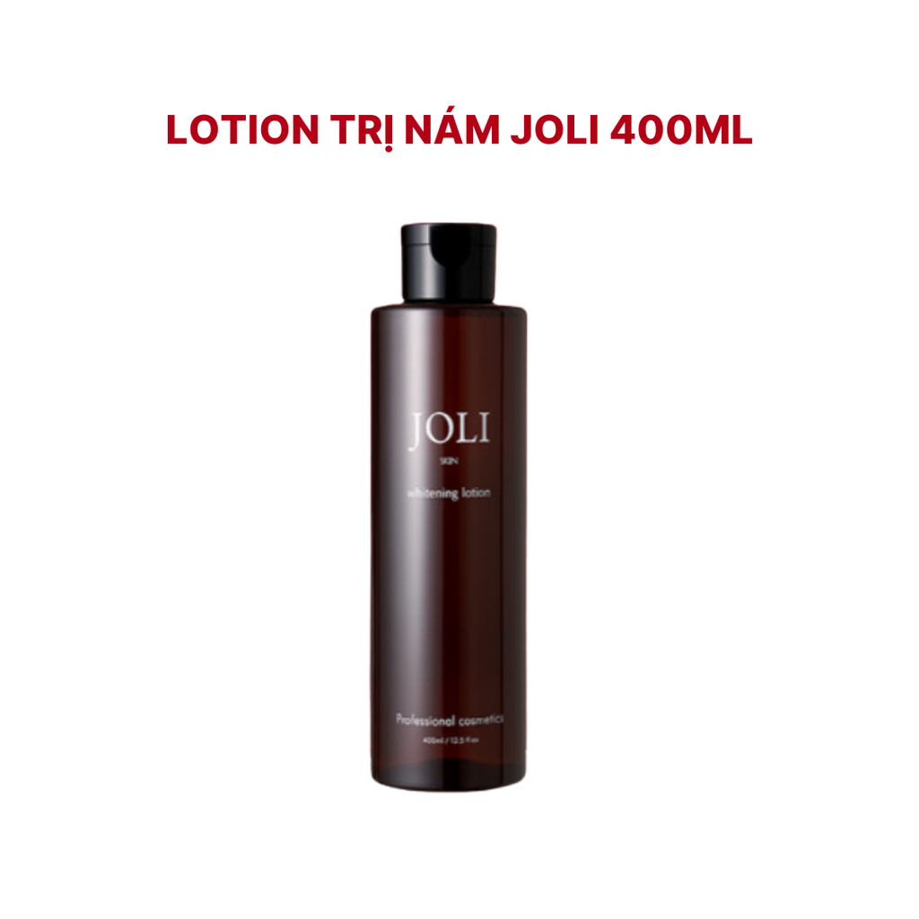 Lotion trị nám trắng da Joli 400ml là sản phẩm dưỡng da chuyên biệt giúp làm mờ vết nám, tàn nhang và các đốm nâu trên da. Với công thức giàu dưỡng chất, sản phẩm giúp làm sáng da, đều màu da và cải thiện kết cấu da. Lotion Joli thẩm thấu nhanh, không gây nhờn rít, giúp da dễ dàng hấp thụ dưỡng chất. Sản phẩm được thiết kế để sử dụng hàng ngày, giúp duy trì làn da trắng sáng, mịn màng và khỏe mạnh. Lotion Joli là giải pháp hiệu quả cho làn da bị nám, tàn nhang và không đều màu.