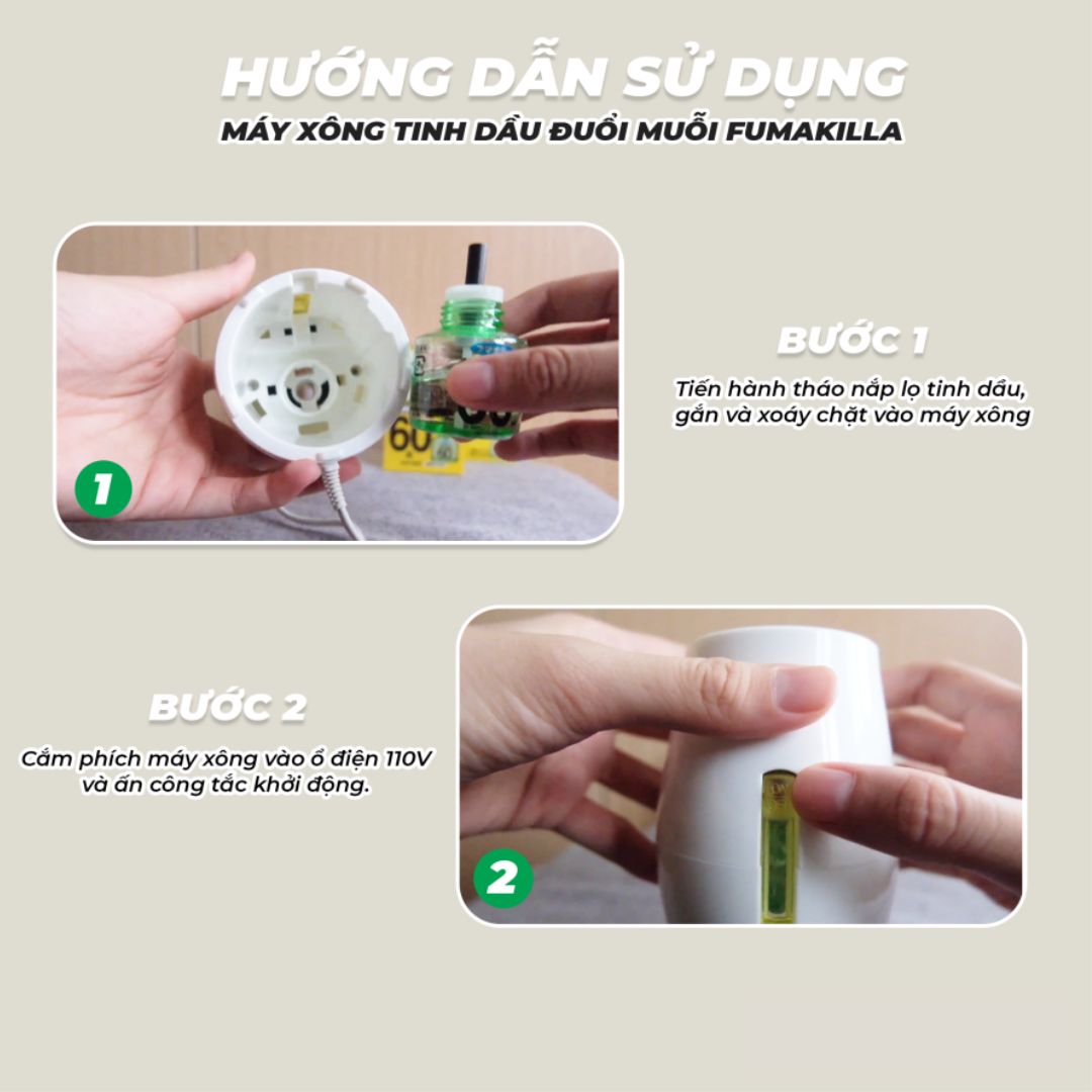 - Máy đuổi muỗi có lọ tinh dầu thiên nhiên an toàn, không gây độc hại cho sức khỏe.