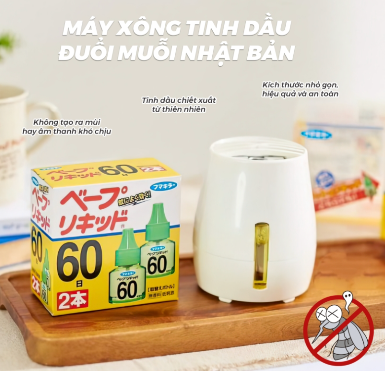 - Máy đuổi muỗi bằng tinh dầu hàng chính hãng của Nhật Bản tiện lợi, dễ dàng sử dụng, đặc biệt hiệu quả, an toàn cho sức khỏe gia đình bạn...được nhiều người ưa chuộng
