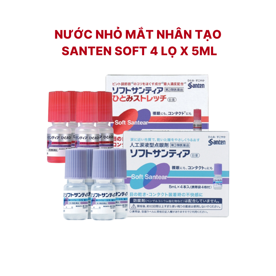 - Nước nhỏ mắt Santen Soft Santear giúp vệ sinh mắt, cải thiện tình trạng khô, mỏi ở mắt, hỗ trợ hồi phục thị lực để bạn có đôi mắt sáng, khỏe hơn.