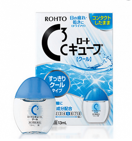 Thuốc Nhỏ Mắt ROHTO C3 Cube có thành phần gồm vitamin B6, A, E là các chất được chứng minh là có hiệu quả trong việc ngăn ngừa ngứa mắt, đôi mắt đỏ ngầu, chống mệt mỏi, khô mắt, bức xạ tia cực tím trên mắt và các bệnh ở mắt, bạn sẽ có cảm giác the mát đánh tan mỏi mắt và nhức mắt chỉ sau giọt đầu tiên.