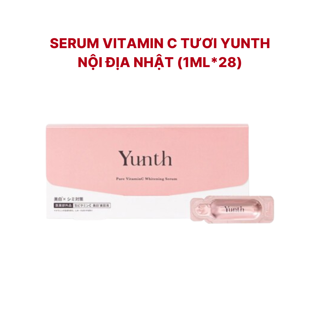 Yunth là một thương hiệu mỹ phẩm của Nhật Bản, nổi tiếng với các sản phẩm chăm sóc da chất lượng cao. Các sản phẩm của Yunth được yêu thích vì sản xuất với nguyên liệu cao cấp và công nghệ tiên tiến, đảm bảo an toàn và hiệu quả cho người dùng.Vitamin C nguyên chất 100% thẩm thấu sâu vào từng ngóc ngách của da. Vitamin C 28 ngày của Yunth là sản phẩm nổi bật nhất của hãng. Vitamin C tươi 28 ngày có công thức độc đáo không chứa bất kỳ thành phần không cần thiết nào, chỉ gồm các thành phần dưỡng ẩm và axit ascorbic.