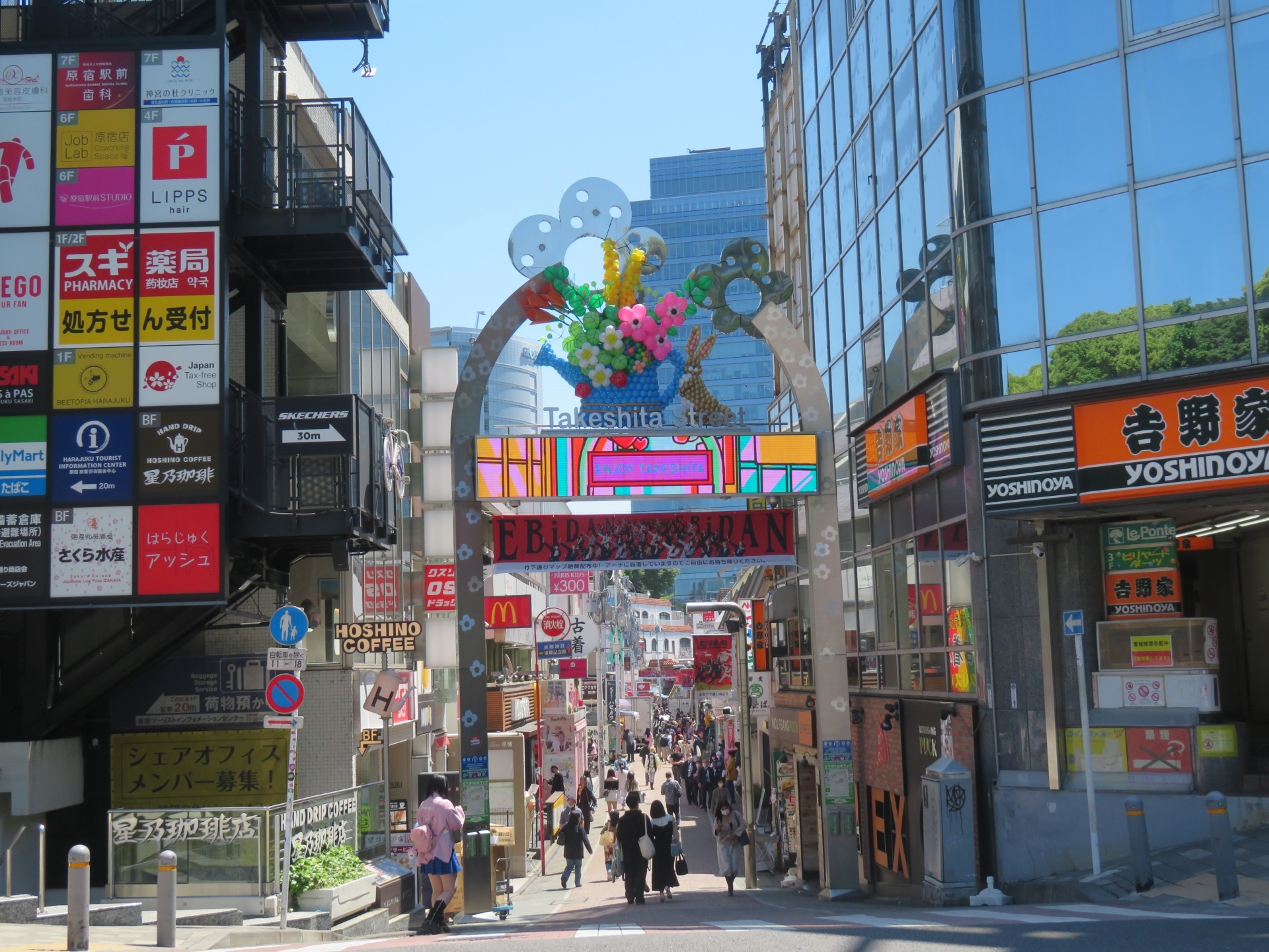 Harajuku Takeshita là biểu tượng của văn hóa thanh thiếu niên Tokyo, tập trung hàng loạt cửa hàng thời trang đường phố, quán cà phê sáng tạo, và tiệm đồ idol J-pop. Đặc biệt, crepe Harajuku là món ăn vặt nổi tiếng không thể bỏ lỡ.