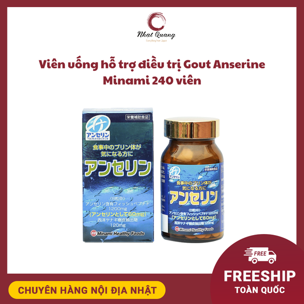 - Anserine Minami Healthy Foods 240 với thành phần chính là Anserine giúp làm giảm nồng độ acid uric trong máu và tại các khớp xương, hỗ trợ điều trị gout.