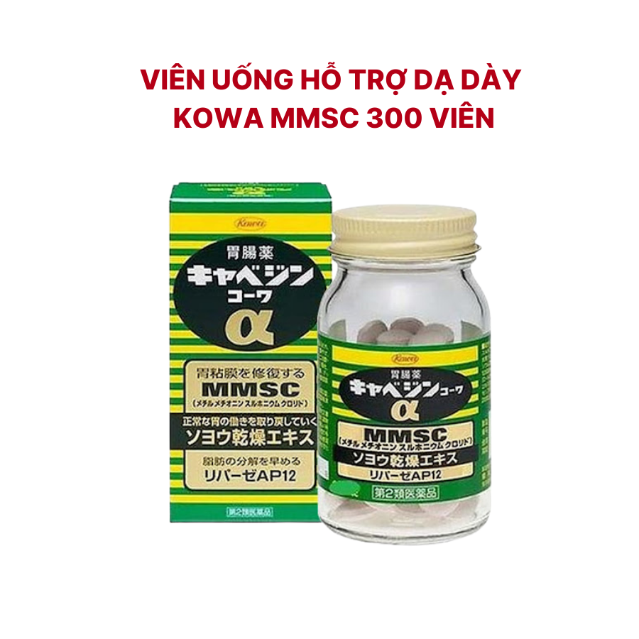 Viên Uống Hỗ Trợ Trị Đau Dạ Dày Kowa MMSC- 300 Viên mẫu mới là sản phẩm nổi bật của thương hiệu KOWA, Nhật Bản, được nghiên cứu để hỗ trợ điều trị và giảm triệu chứng đau dạ dày hiệu quả. Với công thức tối ưu chứa các thành phần tự nhiên và an toàn, sản phẩm giúp làm lành tổn thương niêm mạc dạ dày, giảm cảm giác khó chịu và ợ chua. Sản phẩm phù hợp cho những người thường xuyên gặp các vấn đề về dạ dày như viêm loét, đau do căng thẳng hoặc thói quen ăn uống không hợp lý. Chứa 300 viên, mẫu mới này mang lại thời gian sử dụng lâu dài, giúp duy trì sức khỏe dạ dày ổn định. Cách dùng dễ dàng, phù hợp cho cả người lớn tuổi và người trẻ đang gặp các vấn đề về tiêu hóa. Sản phẩm này không chỉ hỗ trợ điều trị mà còn giúp nâng cao chất lượng cuộc sống của người bệnh.